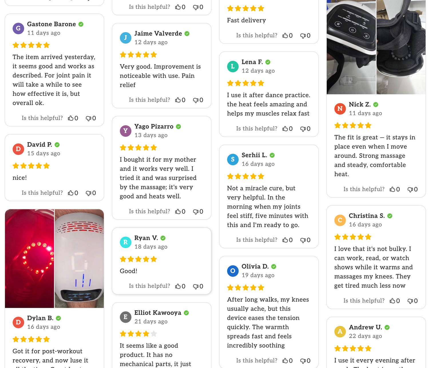 ⭐⭐⭐⭐⭐ 4.9/5 based on 50+ verified reviews "I use it every evening after work. The heat is gentle, the vibration is strong, and the stiffness in my knee has definitely improved"